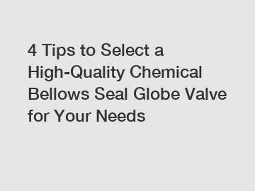 4 Tips to Select a High-Quality Chemical Bellows Seal Globe Valve for Your Needs