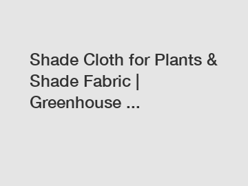 Shade Cloth for Plants & Shade Fabric | Greenhouse ...