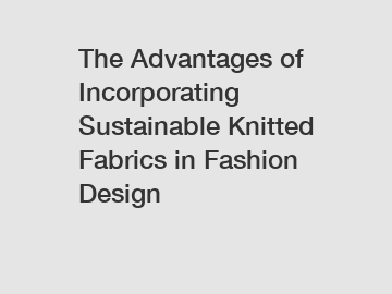 The Advantages of Incorporating Sustainable Knitted Fabrics in Fashion Design Incorporating sustainable knitted fabrics in fashion design offers numerous benefits, including reducing environmental impact, enhancing brand reputation, and meeting consumer demand for eco-friendly options.